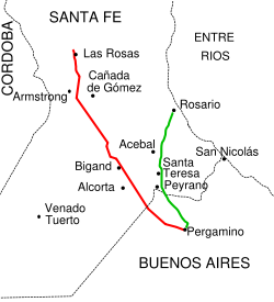 La obra, que tenía un presupuesto oficial de 174 millones de pesos, consiste entre otras cosas en la pavimentación de 34 kilómetros de ruta, en dos tramos: uno que va desde la ruta 33 hasta el río Carcarañá, y el otro desde el río hasta el cruce hacia Villa Eloísa. Se construirán puentes sobre el Carcarañá, en jurisdicción de Los Molinos, y sobre la 33, ya en jurisdicción de Chabás. Y se hará una colectora para conectar con el tramo de ruta hacia Bigand.