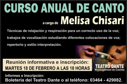 El Teatro Dante informa sobre inscripciones para los cursos anuales de canto y de teatro 2014