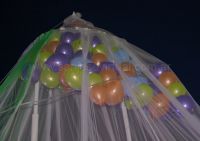 Cientos de globos emergieron del árbol de los buenos deseos