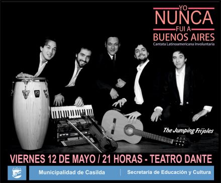 The Jumping Frijoles, grupo músico-teatral, se presentará en Teatro Dante con su espectáculo “Yo nunca fui a Buenos Aires”, el próximo viernes 12 de mayo, a las 21 horas. Las entradas están a la venta en la boletería del Teatro.