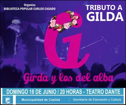 Este domingo 18 de junio, a las 20 horas, en Teatro Dante, se presenta "Girda y los del Alba" la banda que rinde tributo a la cantante tropical Gilda. La banda llega a Casilda para rendir su homenaje, en un espectáculo organizado por la Biblioteca Popular “Carlos Casado”.