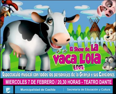 El personaje más esperado por los chicos, La Vaca Lola, estará en Casilda junto a todos sus amigos de la granja, el próximos miércoles 7 de febrero, en Teatro Dante. Desde las 20:30 hs., las familias podrán disfrutar de un show multimedia con vistosa escenografía, vestuario muy colorido y una historia que atrapará la atención de principio a fin.