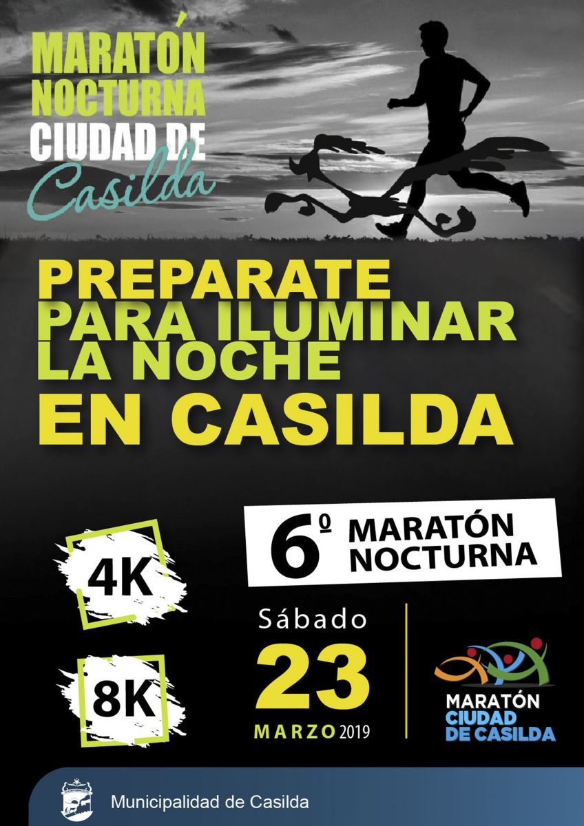Como cada año, la Municipalidad de Casilda, con la colaboración del Grupo Correcaminos, organiza la Maratón Nocturna, cuyo objetivo es promover no sólo el deporte sino también la solidaridad, a través del aporte de alimentos no perecederos junto a la inscripción.