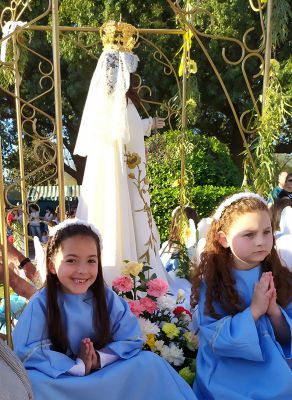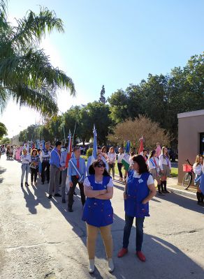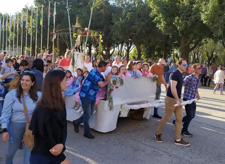 Por la tarde, a las 16hs., se realizó una nueva misa y al término de la misma, la solemne procesión transportando la imagen de nuestra patrona, acompañada de fieles, niños y abanderados de las distintas instituciones educativas, deportivas y culturales y encabezada por el padre Horacio Savoretti, el Presidente Comunal Ezequiel Ruani y demás autoridades locales.